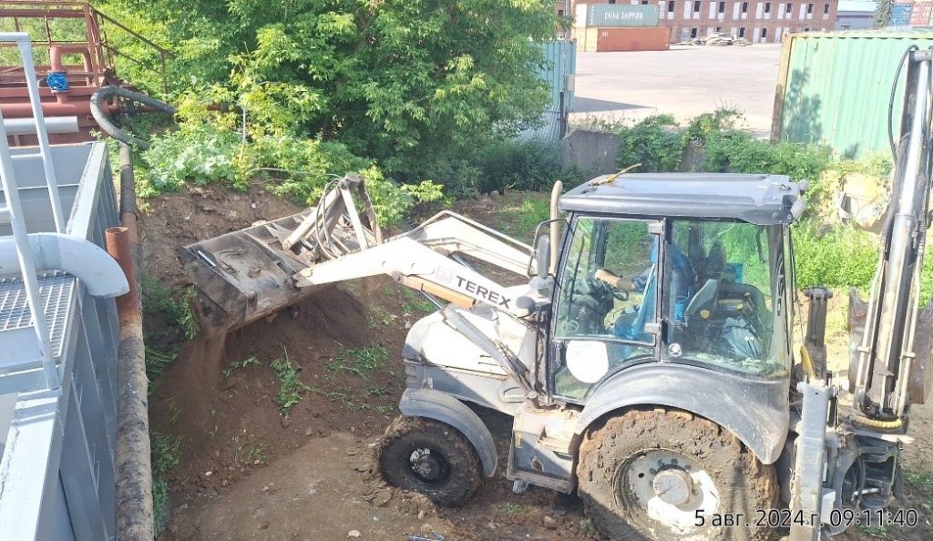 - Обваловка торцевой стены, засыпка траншеи с пескопульпой ду 150мм.